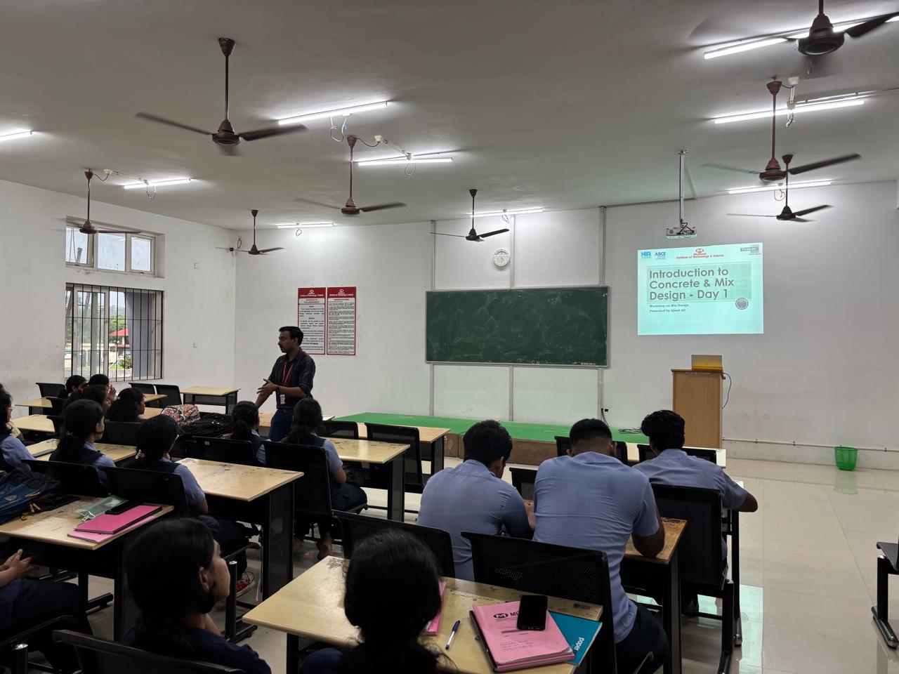 The Indian Concrete Institute (ICI) Student Chapter of MITS successfully organized a five-day In-House Concrete Mix Design Workshop from March 17 to 21, 2025. Ajmal Ali and Niranjana S, students from S6 Civil Engineering were the resource persons for the event. A total of 33 participants from first and second-year Civil Engineering actively took part in the sessions. The workshop provided hands-on experience and practical insights into the fundamentals of concrete mix design, equipping students with essential skills relevant to modern construction practices.